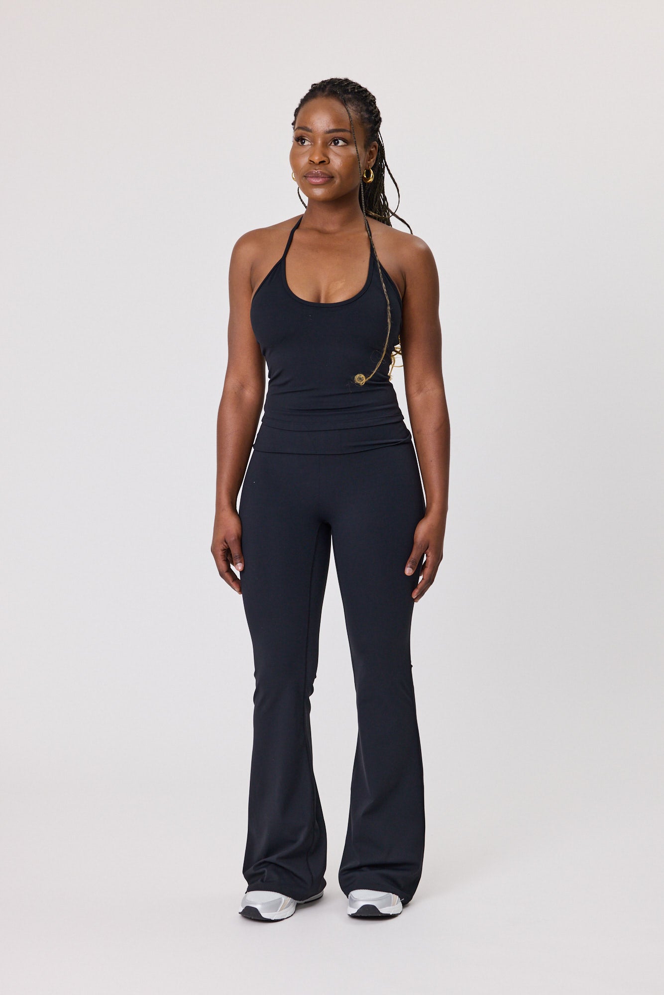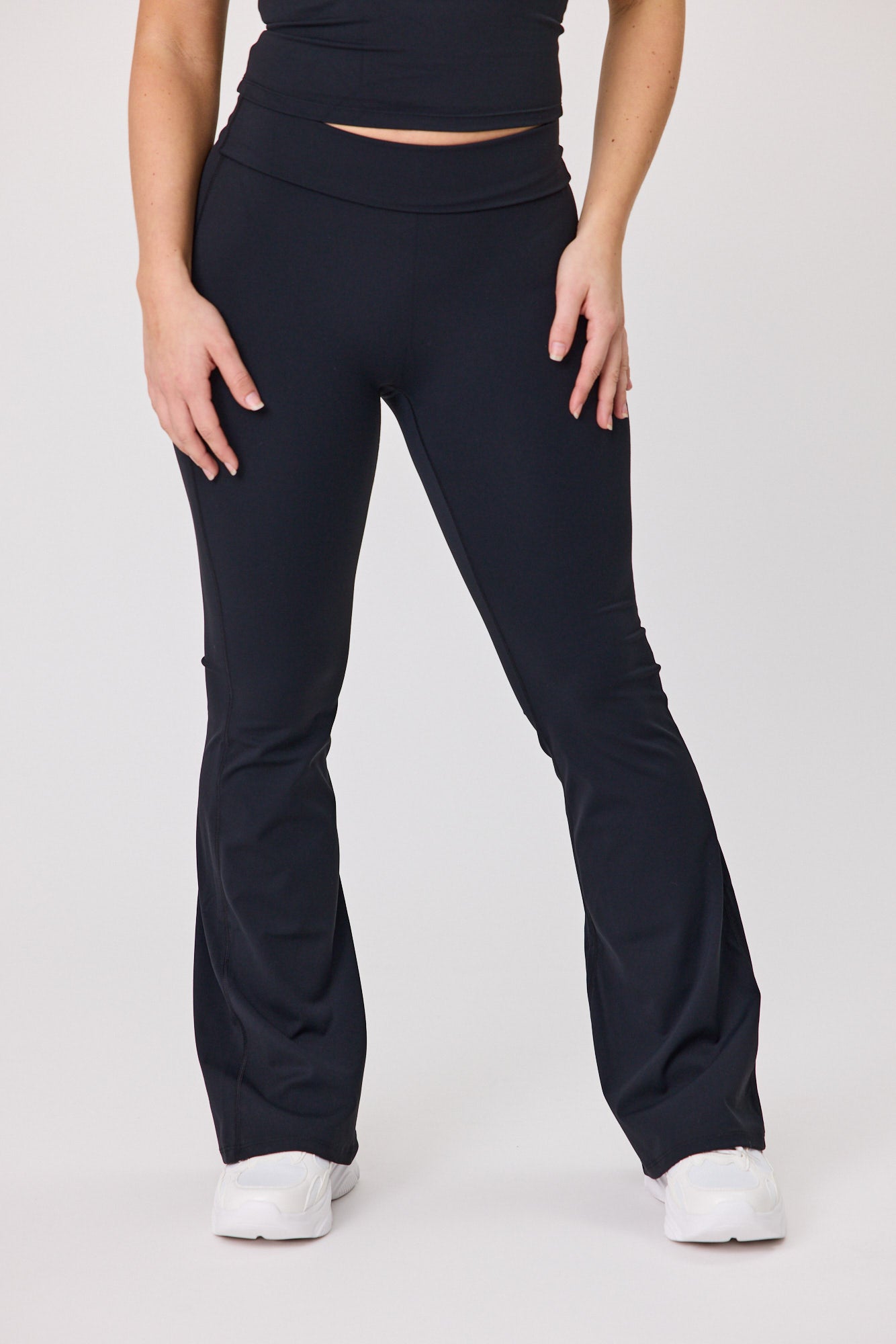 The Serene Fold-Over Flared Pant are the perfect pair of bottoms for low impact workouts and everyday wear. These pants are a versatile style that can be worn low or mid-rise. The fold-over waist and flare offer a more elevated, stylish workout look while also ensuring maximum comfort. Wear these from Pilates and straight to brunch, and perfectly pair them as a matching set with the Serene Halter Tie Tank for a luxurious look and feel fitting for any occasion.